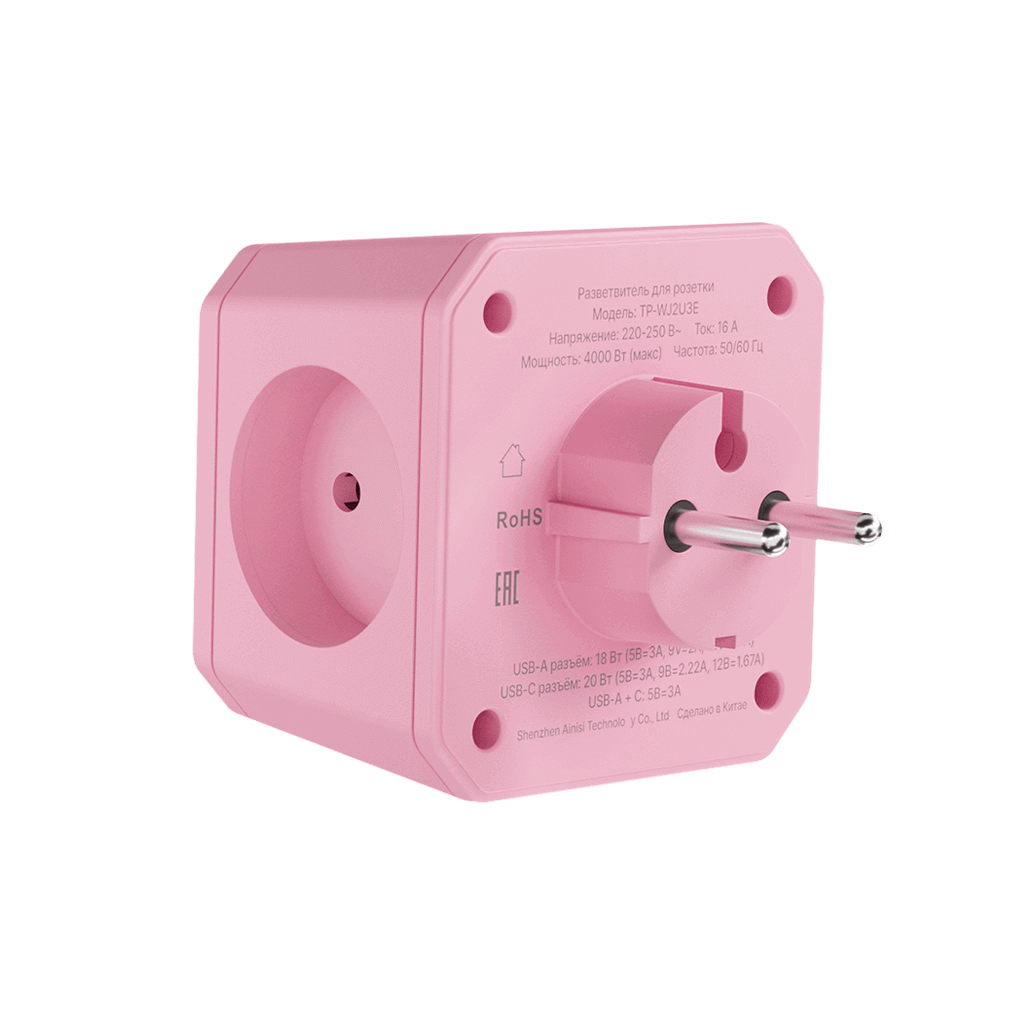 —Разветвитель на 3 розетки, 1 USB 18 Вт + 1 Type-C 20 Вт, розовая сакура TP-WJ2U3E