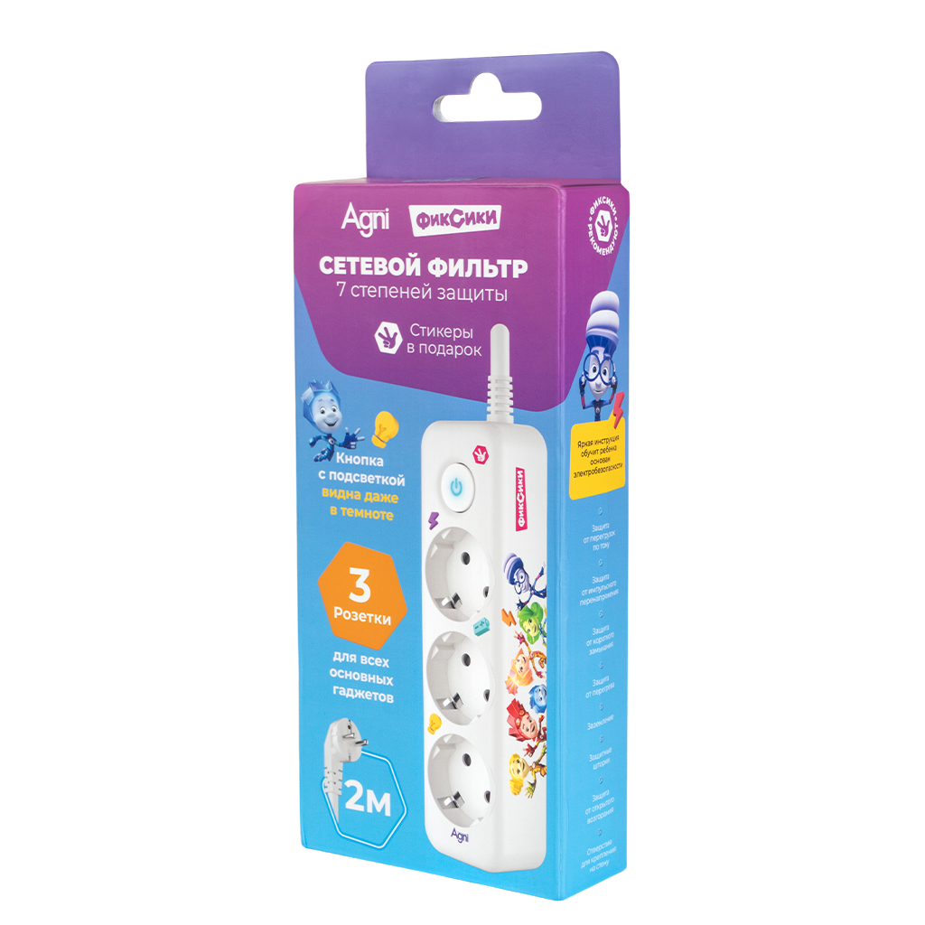 Сетевые фильтры AGNI рассчитаны на домашнее использование, включая детскую комнату, где особенно важна электробезопасность. Семь уровней защиты снижают риски, связанные с нестабильной сетью: скачки напряжения, перегрузки, короткое замыкание, перегрев и другие причины аварий.