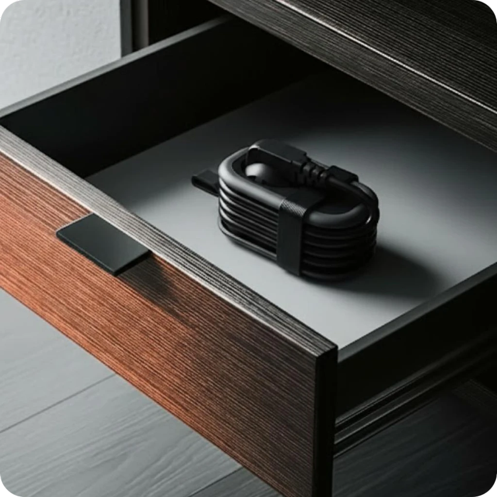 - Надёжный кабель ПВС с медными жилами сечением 1,5 мм² — обеспечивает стабильную подачу тока и снижает нагрев при нагрузке. Кабель рассчитан на длительное использование даже при повышенных нагрузках.