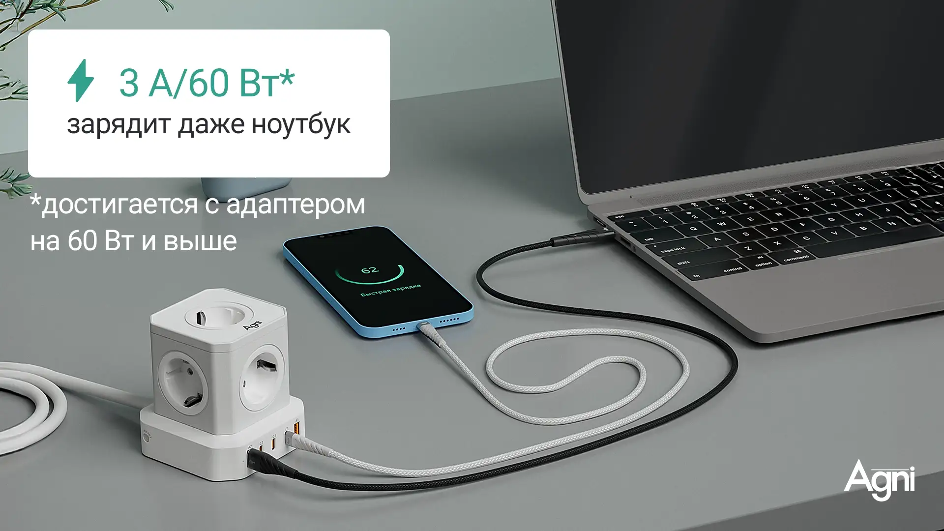 - Полная совместимость с аксессуарами AGNI — зарядными устройствами, сетевыми фильтрами и адаптерами.