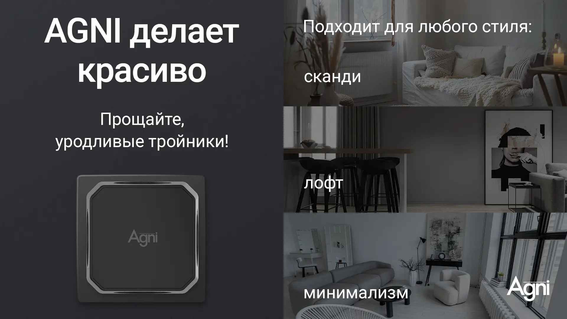 <virtues>Отличный тройник, выглядит круто, из розетки не вываливается. покупкой доволен.</virtues> <limitations>их нет</limitations> <comment>Очень классный, качественный и стильный разветвитель. Долго на него смотрел, думал купить или нет, ведь не дешёвый, но безопасность и доверие к производителю победило все сомнения и купил, о чём ни разу не пожалел. В дальнейшем, всё что связано с подобными вещами, буду покупать только у производителя Agni.</comment>