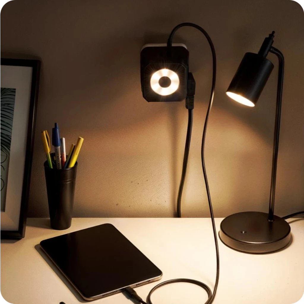 Ночник оснащён тремя уровнями яркости тёплого белого света, которые можно легко регулировать с помощью одной кнопки. Разветвитель не только выполняет роль источника света, но и решает проблему нехватки розеток, обеспечивая возможность одновременной зарядки гаджетов без дополнительных адаптеров.